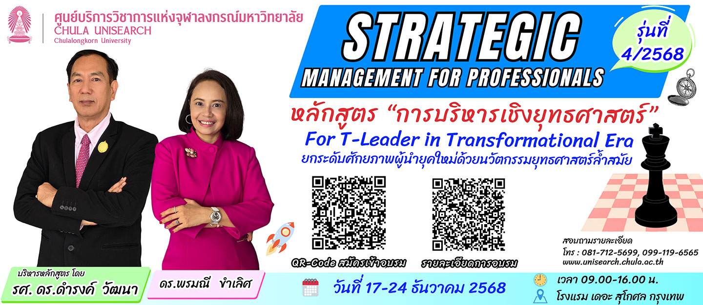ในโลกที่เต็มไปด้วยความท้าทายและการเปลี่ยนแปลงอย่างรวดเร็ว องค์กรต่าง ๆ จำเป็นต้องมีผู้นำที่มีวิสัยทัศน์ สามารถบริหารจัดการเชิงยุทธศาสตร์อย่างเป็นระบบ เพื่อสร้างโอกาสและนำพาองค์กรก้าวไปข้างหน้าอย่างมั่นคง