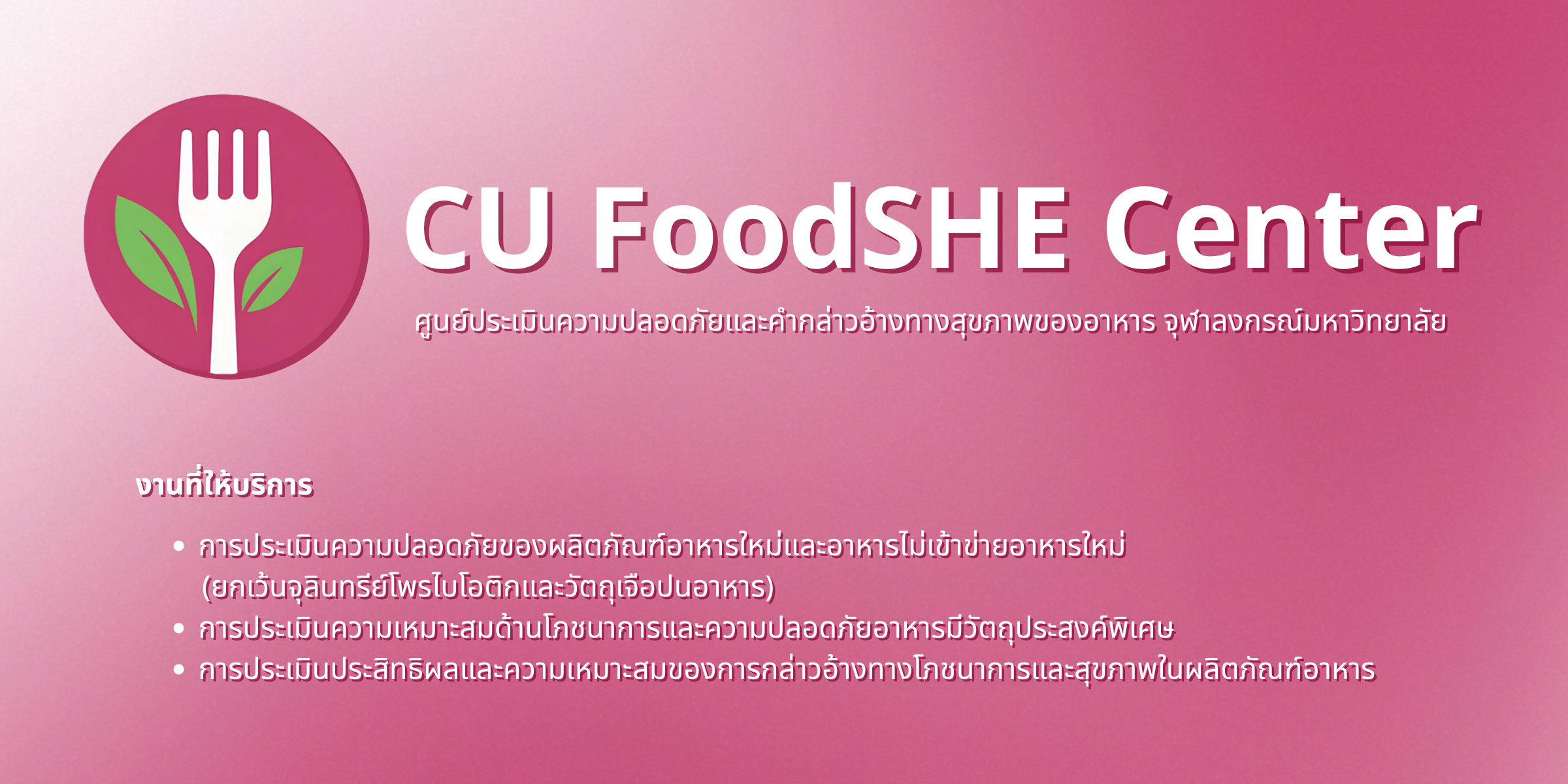 แพลตฟอร์มอาหารและการเกษตรเพื่ออนาคตร่วมกับสำนักบริหารวิจัย (สบจ.) และศูนย์บริการวิชาการแห่งจุฬาลงกรณ์มหาวิทยาลัย (Chula Unisearch) จัดตั้ง ศูนย์ประเมินความปลอดภัยและคำกล่าวอ้างทางสุขภาพของอาหาร จุฬาลงกรณ์มหาวิทยาลัย (CU Food Safety and Health Claim Evaluation Center: CU FoodSHE Center) เพื่อเป็นกลไกสำคัญในการสร้างความเชื่อมั่นด้านคุณภาพและความปลอดภัยอาหาร โดยได้รับการประกาศให้เป็นหน่วยประเมินความปลอดภัยอาหารใหม่ หน่วยประเมินความปลอดภัยอาหารที่ไม่เข้าข่ายอาหารใหม่ และหน่วยประเมินความปลอดภัยและความเหมาะสมด้านโภชนาการสำหรับอาหารมีวัตถุประสงค์พิเศษ และประสิทธิผลและความเหมาะสมของการกล่าวอ้างทางโภชนาการและสุขภาพ จากสำนักงานคณะกรรมการอาหารและยา (อย.) ลงวันที่ 17 กันยายน พ.ศ.2568 พร้อมให้บริการประเมินความปลอดภัยและคำกล่าวอ้างทางสุขภาพของอาหาร